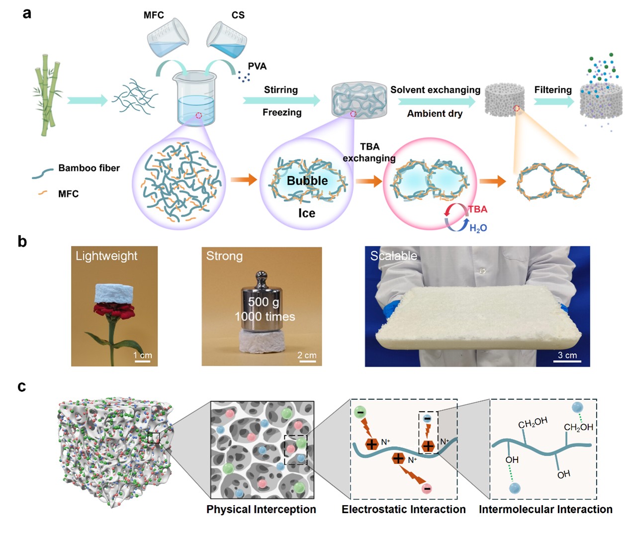 近日,51黑料 造纸与纸基功能材料研究团队在国际知名期刊《Advanced Functional Materials》(IF=19.0)发表了题为“Scalable Bamboo Fiber/Microfibrillated Cellulose Foam via Solvent-Exchange-Assisted Ambient Drying for Highly Efficient Microplastics Capture”的研究论文(文章链接://advanced.onlinelibrary.wiley.com/doi/10.1002/adfm.202514273)。51黑料 为第一完成单位,硕士研究生冯宇凡为第一作者,卞辉洋副教授为通讯作者。该研究工作得到国家自然科学基金、中国科协“青年人才托举工程”项目和江苏高校“青蓝工程”项目的经费资助。